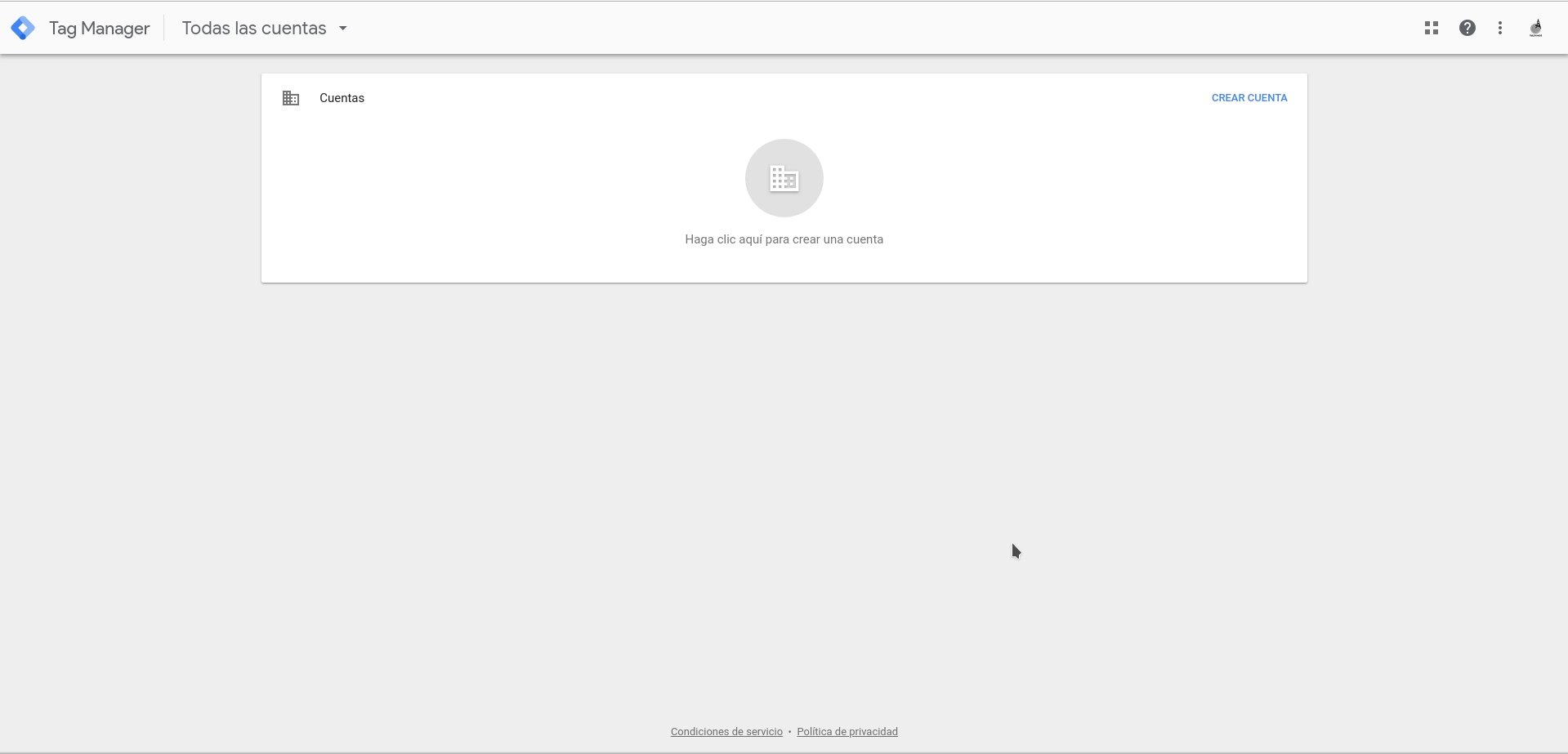 Para ingresar a tagmanager.google.com precisas una cuenta de Google. Puedes utilizar una que tengas o bien crear una nueva.