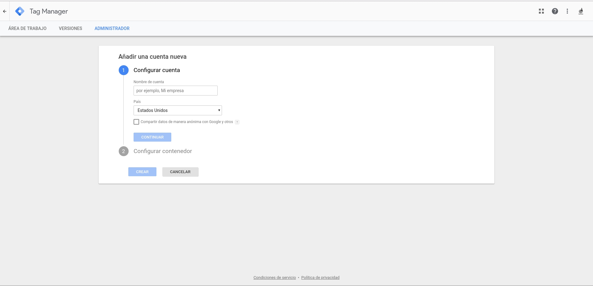 Configurar una Cuenta de Google Tag Manager (GTM)