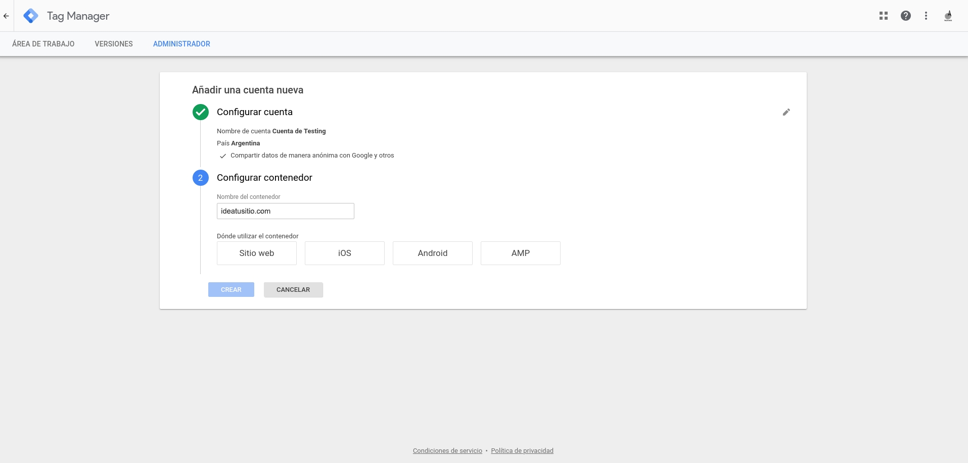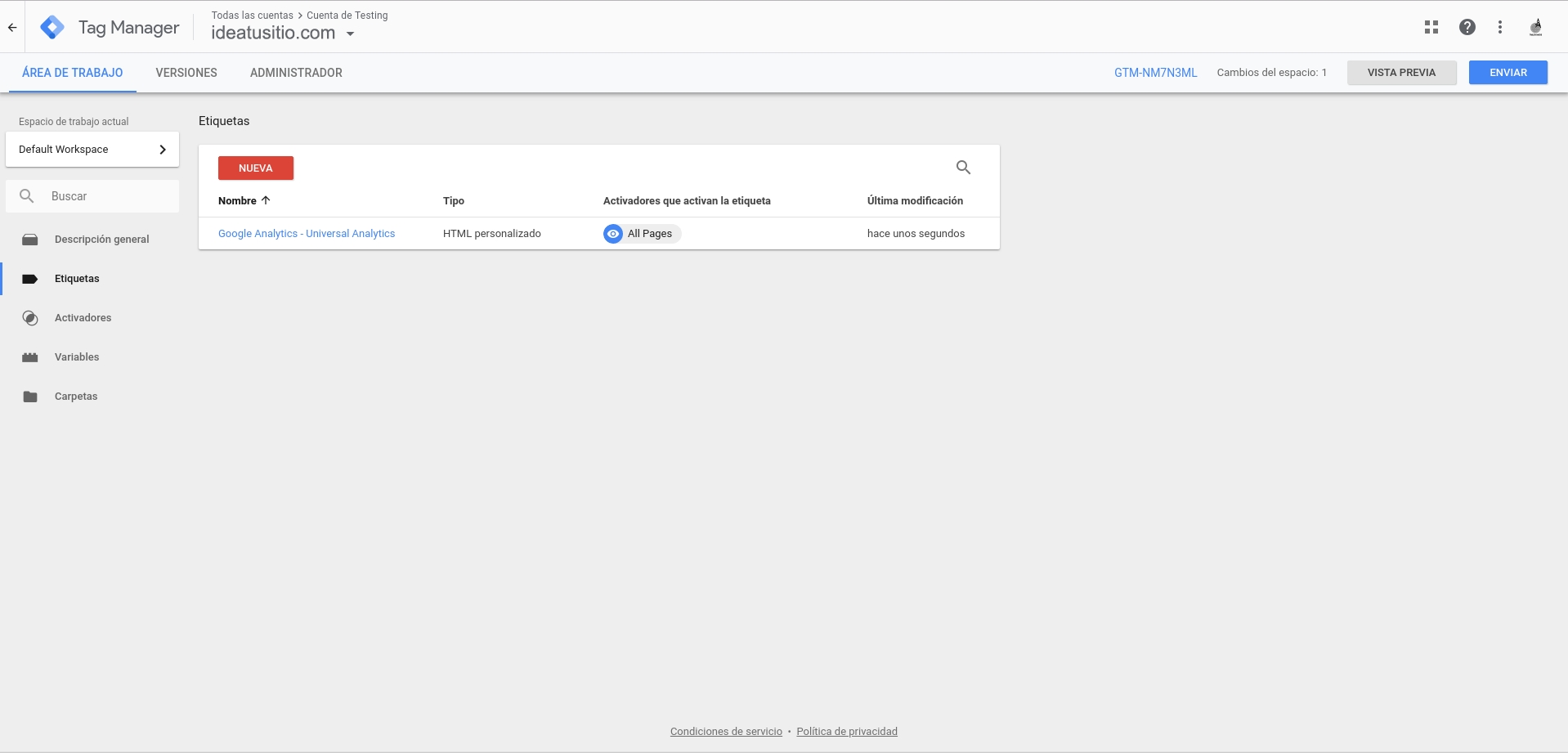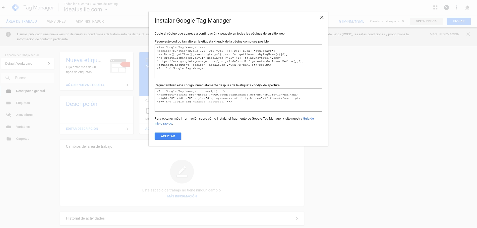 Configurar Google Tag Manager en IDEA TU SITIO.