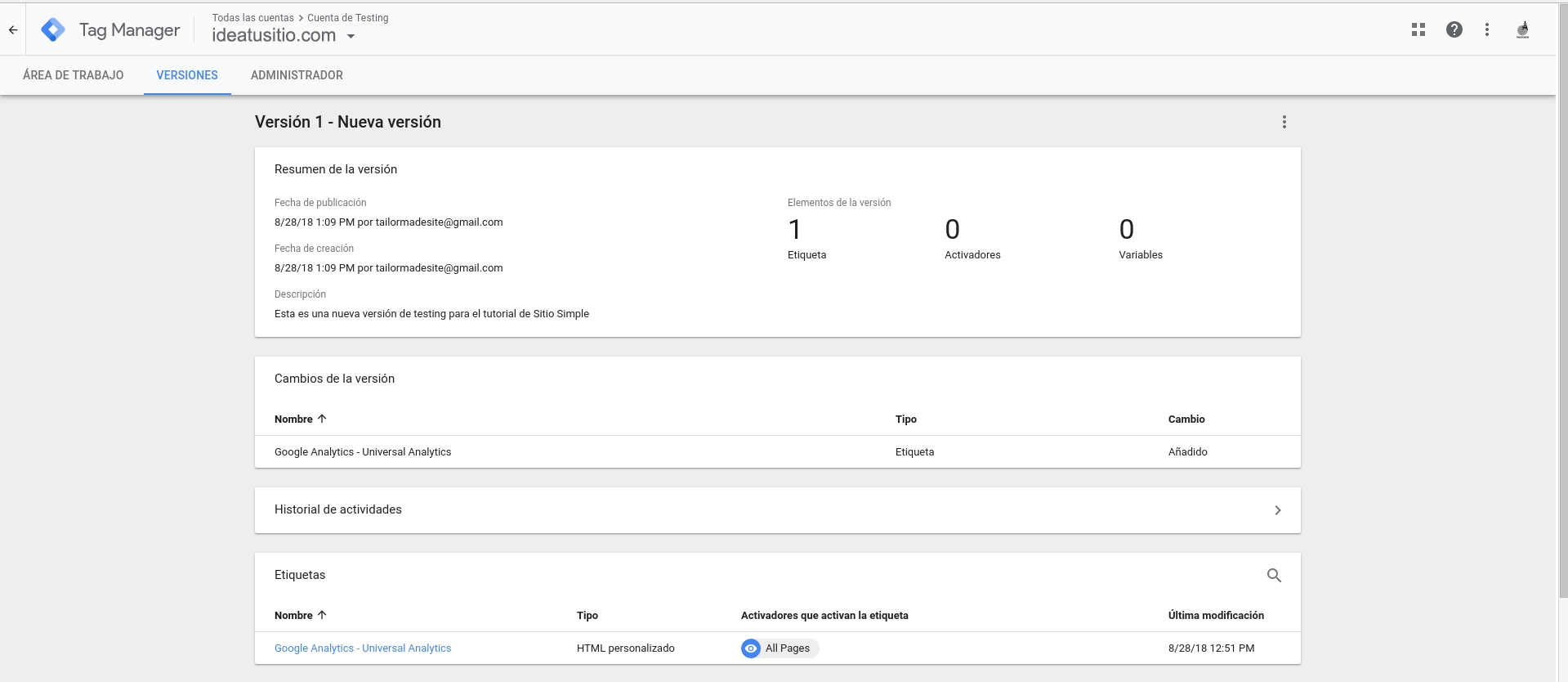 De ahora en más, todas las nuevas etiquetas y/o las modificaciones que realices en Google Tag Manager, se actualizarán automáticamente en tu Sitio Web.